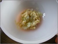 ②冷凍しておいた鶏のササミを大さじ1分すりおろす。