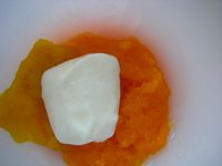 そろそろカボチャに慣れたかな、と思ったので、人参とヨーグルトと一緒に和えてみました。
