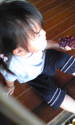 あーちゃん、果物は頑として拒否で、絶対に口にしようとしなかったのに、おもてなし料理に出ていたブドウを食べたのです!!