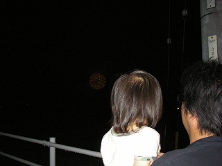 (↑見づらいけど、花火が写ってます)
