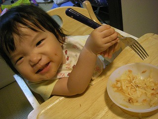 このとき↑は、ママのフォークがいい~!!って、取り上げられちゃった時。