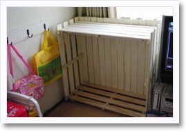 以前作ったままごとキッチンを、少し手直しして娘のワードローブ掛けにしてみました。